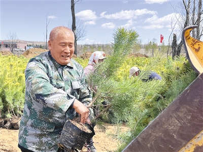贾道尔吉在林场参与植树。 |