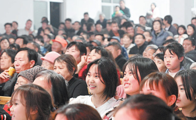 江西弋阳县杨坞村,在新建成的文化中心里,观众们正在观看弋阳腔演出。 |