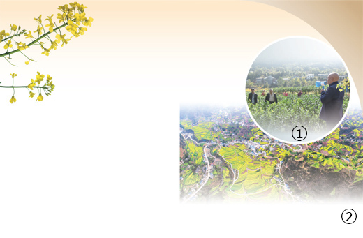 图①为胡启丙(右)在田间地头用小喇叭宣讲。 |