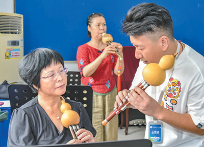 浙江省金华市婺城区老年大学,葫芦丝班的学员在老师指导下学习。 |