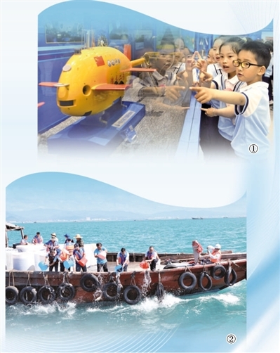 图①:自然资源部第一海洋研究所中国大洋样品馆,小学生们在参观自主水下机器人模型。 |