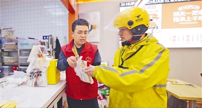 除了停车难,吃饭难也是困扰外卖配送员的一大问题。“中午饭点是外卖配送员最忙碌的时候,等送完餐,许多商家也歇业了。”有没有办法能让外卖配送员吃上热乎饭?范自兴将调研中发现的问题上报给街道。龙泉街道党工委副书记谢鑫斌和社区干部商量后,想到一个好办法:将各个社区针对老年人创办的爱心食堂营业时间顺延到下午4时,满足外卖配送员的用餐需求。