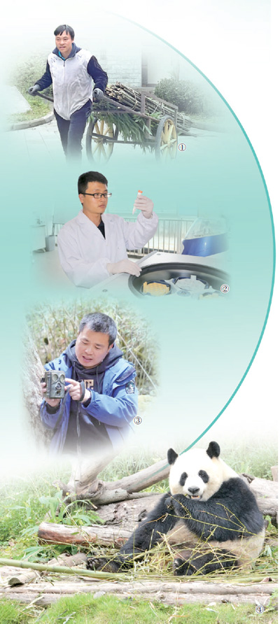 图①:张大磊为大熊猫准备食物。 |