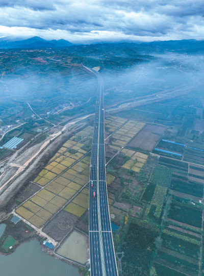 四川巴中至达州高速公路作为国家高速网的重要组成部分,是当地与华中、华东地区相互联系的便捷通道。图为巴达高速赵家湾河大桥。 |
