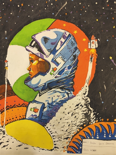 丹尼亚出生于尼日利亚南部的埃多州,目前就读于尼日尔州明纳联邦科技大学信息技术系。“这次大赛的主题是人类探索宇宙的梦想,我用尼日利亚国旗和中国国旗围成一个圆,代表着尼中两国友好和团结。我希望自己的作品能描绘一幅‘梦想成真’的画面,帮助更多非洲孩子筑牢太空梦。”谈到画作的创作初衷和思路时,丹尼亚说:“人类一直渴望飞向太空、探索宇宙,非洲青年也不例外。中国在航空航天领域取得了巨大的发展成就,中国航天员的探索精神正激励非洲青少年去追逐航天梦想。”