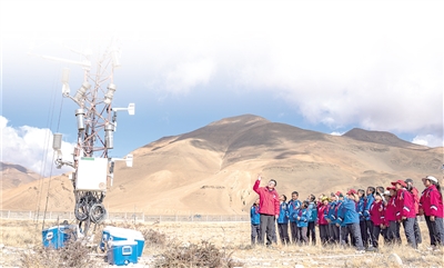 中国科学院珠峰站工作人员5月15日给西藏定日县扎西宗乡完全小学的学生讲解科学仪器的功能作用。 |