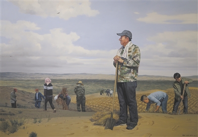 6月17日,是第二十九个世界防治荒漠化和干旱日。我国是世界上受土地荒漠化危害最严重的国家之一,荒漠化土地主要位于“三北”地区。如今,这条东西绵延4400多公里、跨越13个省(区、市)的风沙带上,耸立起“绿色长城”,成为美术工作者表现时代新气象的灵感来源。