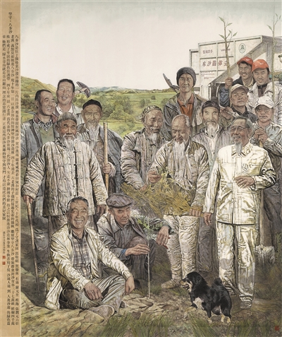 “三北”工程背后,是动人的英雄故事。宁夏“治沙英雄”王有德、甘肃八步沙林场“六老汉”……无数平凡的造林人,以尺寸之功积千秋之利,成为防沙治沙的模范人物,也成为美术工作者着力塑造的英雄形象。