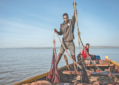 维多利亚湖位于东非大裂谷地区,是非洲最大、世界第二大淡水湖,为坦桑尼亚、乌干达和肯尼亚共有。湖区产业以渔业为主,是沿湖居民的重要食物、收入来源。图为近日,在坦桑尼亚姆万扎省,渔民在维多利亚湖中捕鱼。