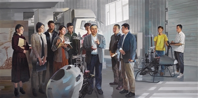 油画《时代楷模——黄大年》,作者王晓明、张伟时。 |