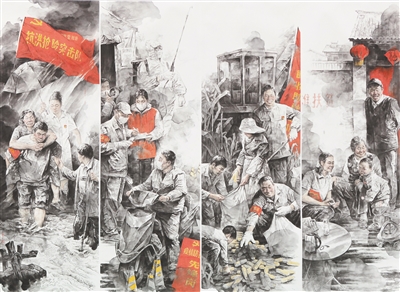 危难时刻,他们挺身而出,把个人生死置之度外;生产一线,他们攻坚克难,把责任担当扛在肩上;田间地头,他们走家入户,把群众冷暖挂在心头……他们有一个共同的名字:共产党员。党员攻坚队、党员责任区、党员示范岗,近年来大批优秀党员干部心往基层想、身往基层沉,充分发挥先锋模范作用,在为民服务中锤炼党性、增强本领,不断把人民群众对美好生活的向往变为现实。一个个忙碌的身影、动人的场景激发美术工作者的创作热情,他们用画笔让红色精神绽放时代光芒,让奋斗精神成为时代强音。