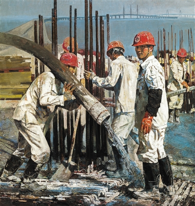 油画《劳动者·记港珠澳大桥建设》,作者刘文伟。 |