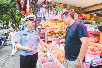 图为谢先锋走访商户征询建议。 |