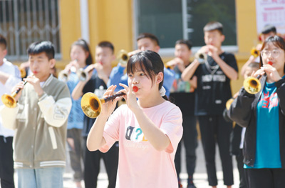 图为吕梁艺校唢呐专业的学生在排练。 |