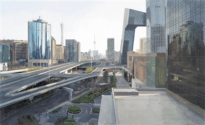 油画《一线城市》,作者邱俊杰,选自“蔚然生长”2023中央美术学院本科生毕业作品展。 |