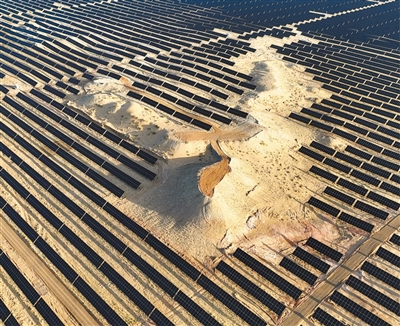 甘肃省张掖市临泽县位于巴丹吉林沙漠南缘,沙漠戈壁占全县总面积的2/3以上。该县在长期坚持生物治沙的同时,积极引入光伏发电治沙项目,昔日的“黄色沙海”变身“蓝色海洋”。