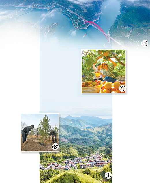 图①:三峡库区湖北省宜昌市秭归县江段鸟瞰图。近年来,当地加强长江防护林、坡地退耕还林等生态工程建设,优化生态环境。 |