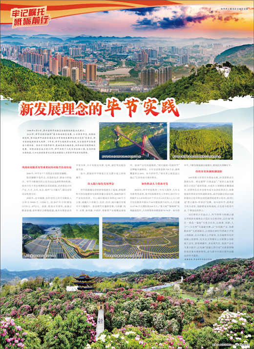 2018年,毕节试验区按照“着力推动绿色发展、人力资源开发、体制机制创新,努力把毕节试验区建设成为贯彻新发展理念的示范区”的要求,努力承担起新的重大使命。5年来,毕节打赢脱贫攻坚战,与全国同步全面建成小康社会。综合实力稳步提升,基础设施大幅改善,经济社会实现跨越式发展。回望试验区成立的35年,毕节实现了人民生活全面小康,生态环境全面改善,人口从控制数量为主到主动推进人力资源开发的历史跨越。