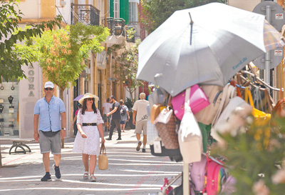 连日来,地中海岛国塞浦路斯遭受热浪侵袭。图为日前,在塞浦路斯尼科西亚老城,人们戴着遮阳帽防晒。