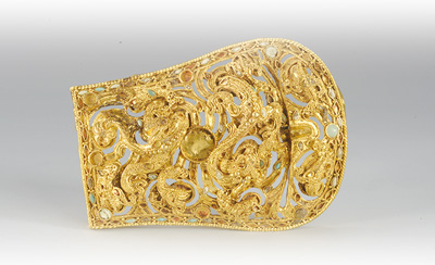 伸出食指,轻触屏幕,原本静止的累丝镶宝八龙纹金带扣一下子“活”了起来。带扣上圆下方金光闪闪,浮雕螭龙眼须活灵活现,按住“文物”上下左右翻转,一个逼真的三维立体影像呈现眼前。
