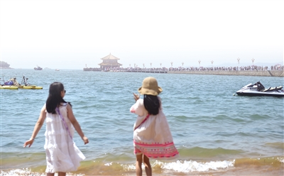 市民许佳颖带着6岁的女儿在金山浴场游玩。“这几年北戴河海边环境越来越好,水质也更好了。我们常带孩子来挖沙、拾贝、踩水,一玩就是一整天。”许佳颖说。