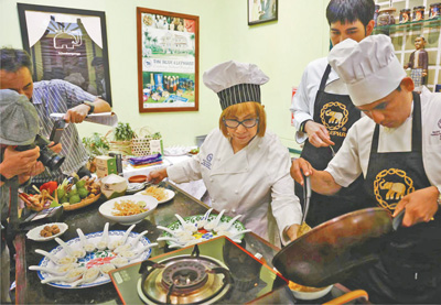 据泰国商业部国际贸易促进司介绍,今年1—5月,泰国食品出口总额为173.75亿美元,中国是泰国食品最大的出口市场。为扩大食品出口、提高泰国美食的国际知名度,泰国公共关系部日前举办美食体验活动。图为厨师在制作当地特色美食。