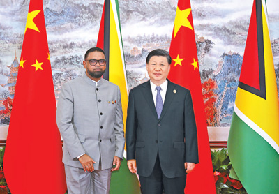 习近平指出,中国和圭亚那虽然相距遥远,但友谊源远流长。圭亚那是加勒比地区最早承认一个中国原则并同新中国建交的国家。去年,中圭隆重庆祝了建交50周年。近年来,圭亚那经济快速发展,国家建设日新月异,中国正在以高质量发展全面推进中国式现代化。中圭两国要做彼此信赖、相互倚重的好朋友,共享机遇、共迎挑战、共谋合作、共促发展,推动构建更加紧密的中圭命运共同体。