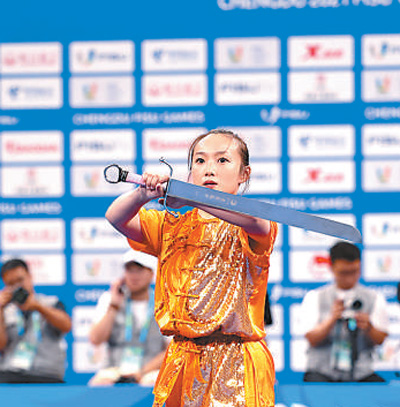 7月29日,中国大学生体育代表团选手宋翠芳夺得成都大运会武术项目女子南刀金牌。 |