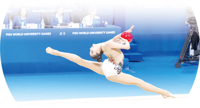7月29日,中国大学生体育代表团选手栗慧琳在成都大运会艺术体操个人全能决赛第一轮比赛中。 |