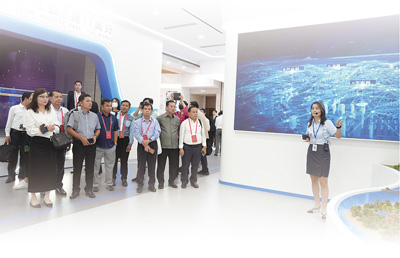 展厅陈列的能源项目仿真模型吸引了不少研修班成员驻足观看,特别是中国能建提出的风光水火储一体化、源网荷储一体化、海上综合能源一体化的新型电力系统解决方案,将绿色电能送到千家万户,助力建设清洁低碳安全高效的现代能源体系。“可持续基础设施发展和能源低碳转型是澜湄国家绿色合作的共同需求与关键核心。”柬埔寨新快数字媒体总编辑隆都·钱德拉表示,中国企业在绿色发展方面做出了榜样,希望未来可以有更多的绿色创新方案推广至其他澜湄国家。