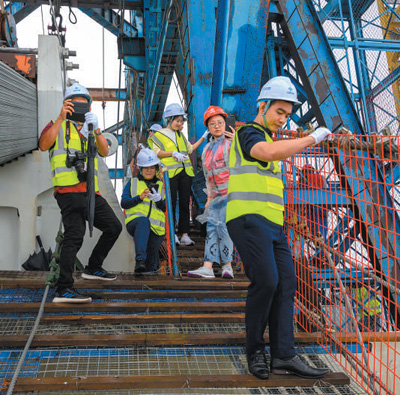 研修班成员登上深中通道伶仃洋大桥主塔塔顶。 |