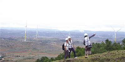 研修班成员在国家电投云南国际富源西风电基地采访。 |