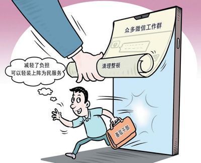 “要求基层干部关注各种微信公众号、下载安装各种手机应用,签到、点赞、转发等,挤占了基层干部的工作时间,增加了额外负担。”甘肃张掖市纪委监委党风政风监督室主任胡海说,针对网络工作群和工作应用软件过多过滥等形式主义问题,张掖市通过专项整治开展清理整合,全市微信工作群数量下降45%、QQ工作群数量下降47%,取得良好效果。