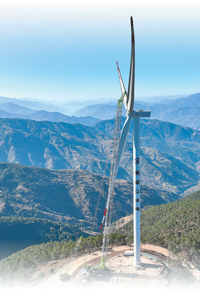 大风呼啸而过。风机叶轮直径达172米,扫风面积相当于3.2个标准足球场,吊装作业需在百米高空进行,风速稍大就有安全隐患。平均下来,每天可进行吊装施工的时间不足8小时。建设者24小时驻守现场抢抓施工窗口期。山风往往在后半夜才肯歇息,酷寒的山顶上,吊车缓缓启动,风机拔节而起。