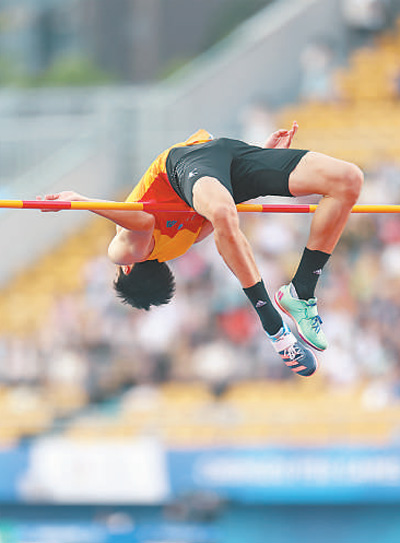 3日,中国代表团选手王振在田径男子跳高决赛中。 |