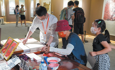 顾客正在荣宝斋挑选文房四宝。 |