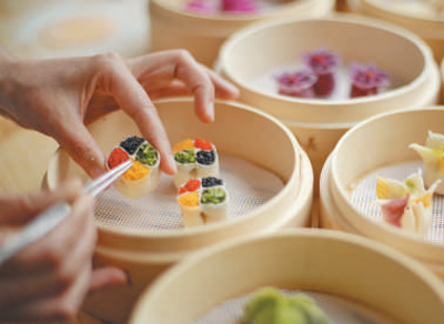 厨师正在将饺子装盘。 |