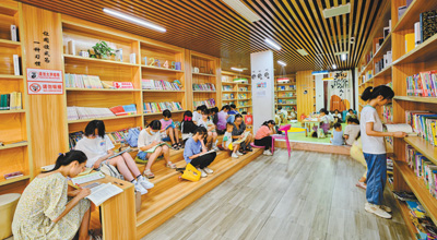 日前,江西省南昌县八月湖街道城市书房,孩子们在阅读。
