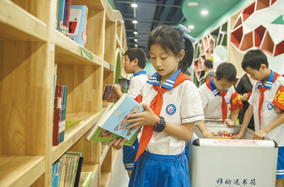 近日,湖南省娄底市图书馆开展“小小图书管理员”暑期社会实践活动,丰富孩子们的假期生活。图为孩子们将图书依序放回书架。