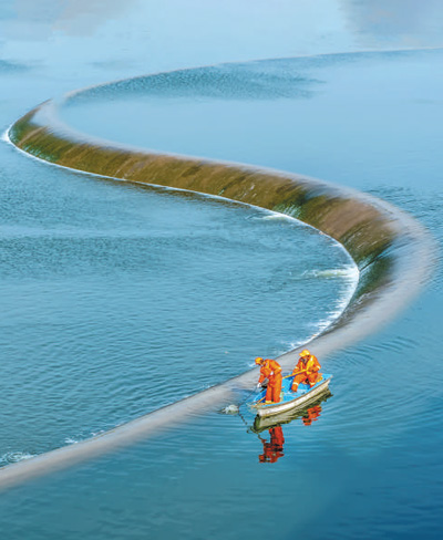 西安市沣河,河道保洁员护佑碧水常清。 |