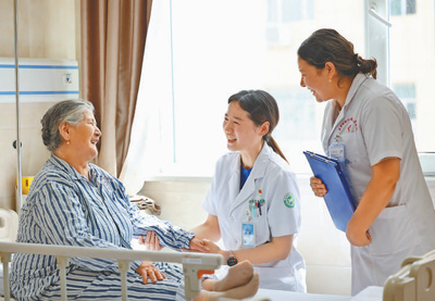 8月17日,在新疆库车市人民医院,医护人员与住院患者进行交流。 |