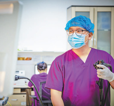 8月19日,重庆南川区人民医院消化内科医生向波在进行消化内镜操作。 |