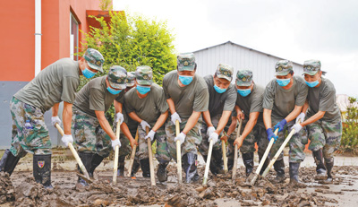 日前,吉林省舒兰市金马镇中心学校,吉林省军区官兵开展灾后清淤,确保学生如期开学。 孙有权摄(人民视觉)