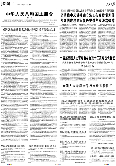 全国人民代表大会常务委员会公告