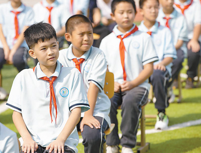 9月1日,北京市房山区石楼中心小学如期开学。据了解,房山区是7月29日至8月2日北京特大暴雨灾害导致人员财产损失最严重的地区之一,房山区教委快速启动受损学校复建工作,全面排查灾后安全风险隐患,指导校园做好相关应急处置,确保所有学校如期开学。图为石楼中心小学开学典礼现场。