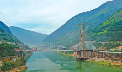 横跨金沙江、连接四川和云南两省的都香高速金沙江特大桥9月1日顺利合龙,主桥全面贯通,大桥建设转入桥面系施工。金沙江特大桥主塔高197.6米,全长565米,主跨跨径340米,是国内最大跨径钢箱混合梁独塔斜拉桥。大桥建成后,将有利于推动西南地区经济社会发展。图为都香高速金沙江特大桥合龙作业现场。