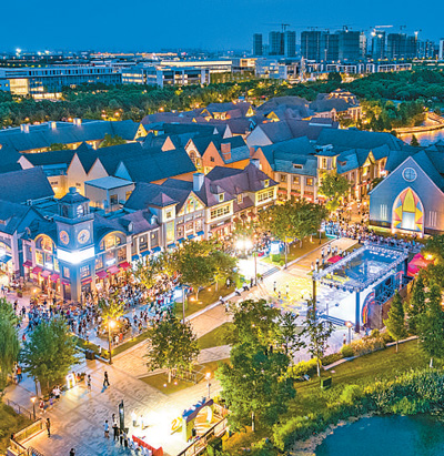 江苏昆山大渔湾商业街,夜晚灯火璀璨。 |