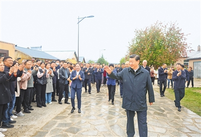 9月6日至8日,中共中央总书记、国家主席、中央军委主席习近平在黑龙江考察。这是6日下午,习近平在大兴安岭地区漠河市北极村考察时,向当地群众挥手致意。 |