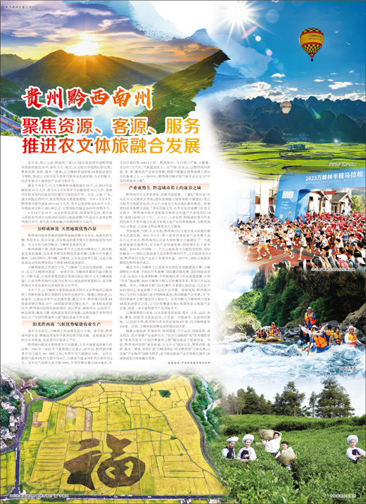 近年来,珠江上游、黔滇桂三省(区)接合部的贵州省黔西南布依族苗族自治州,依托天文、地文、人文综合形成的比较优势,聚焦资源、客源、服务三要素,以万峰林争创国家5A级旅游景区为契机,推进以文旅为龙头的现代服务业加速发展,为乡村振兴、经济发展注入强劲的产业动力和活力。
