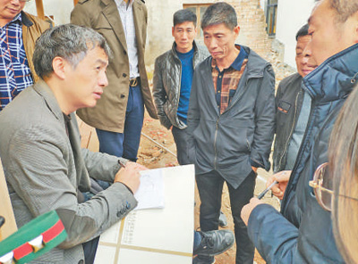杨贵庆(左一)在黄岩区高桥街道瓦瓷窑村与当地干部和村民探讨规划方案。 |